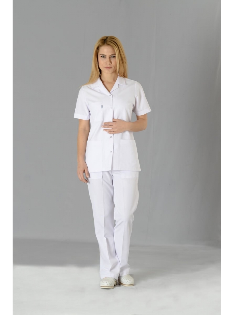 BAYANLAR İÇİN, BEYAZ RENK CEKET VE PANTOLONDAN OLUŞAN TAKIM FORMADIR.