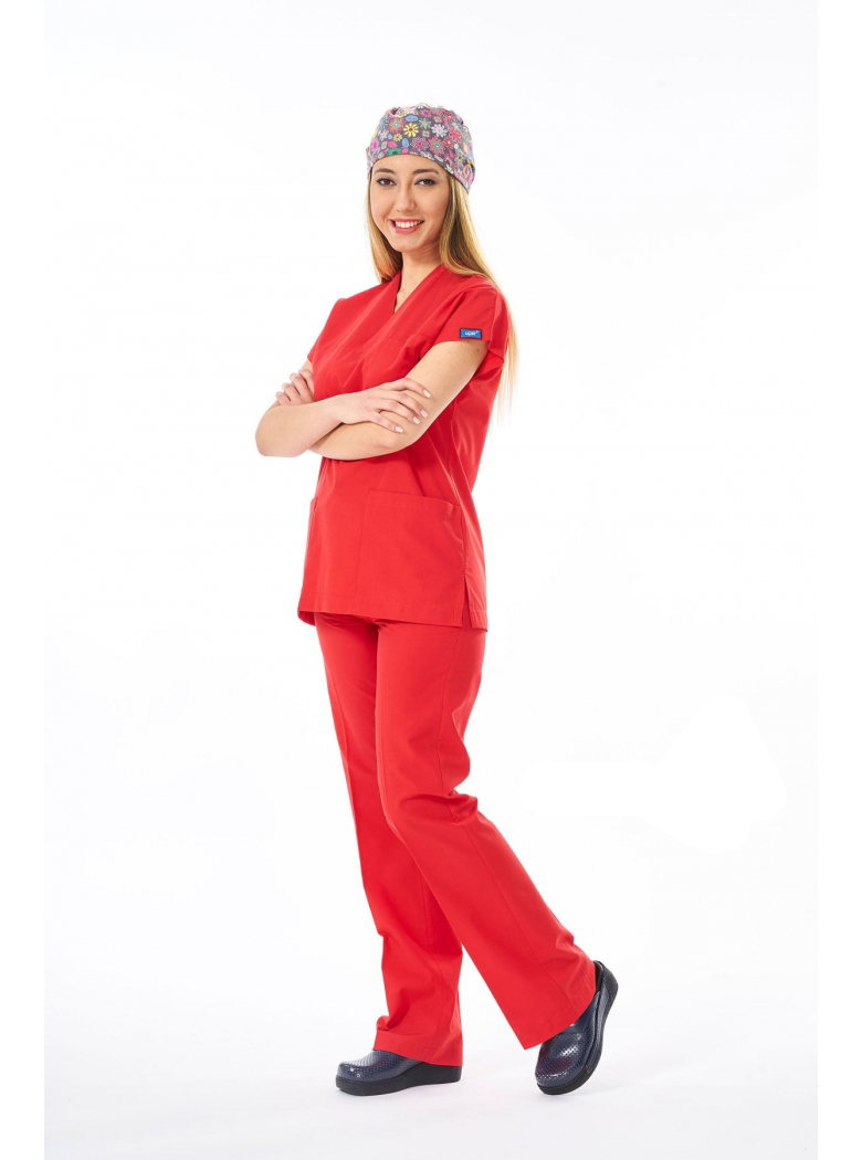 UNİSEKS KESİM, YARASAKOL V YAKA ÜST VE AYNI RENK PANTOLONDAN OLUŞAN TAKIM FORMADIR.