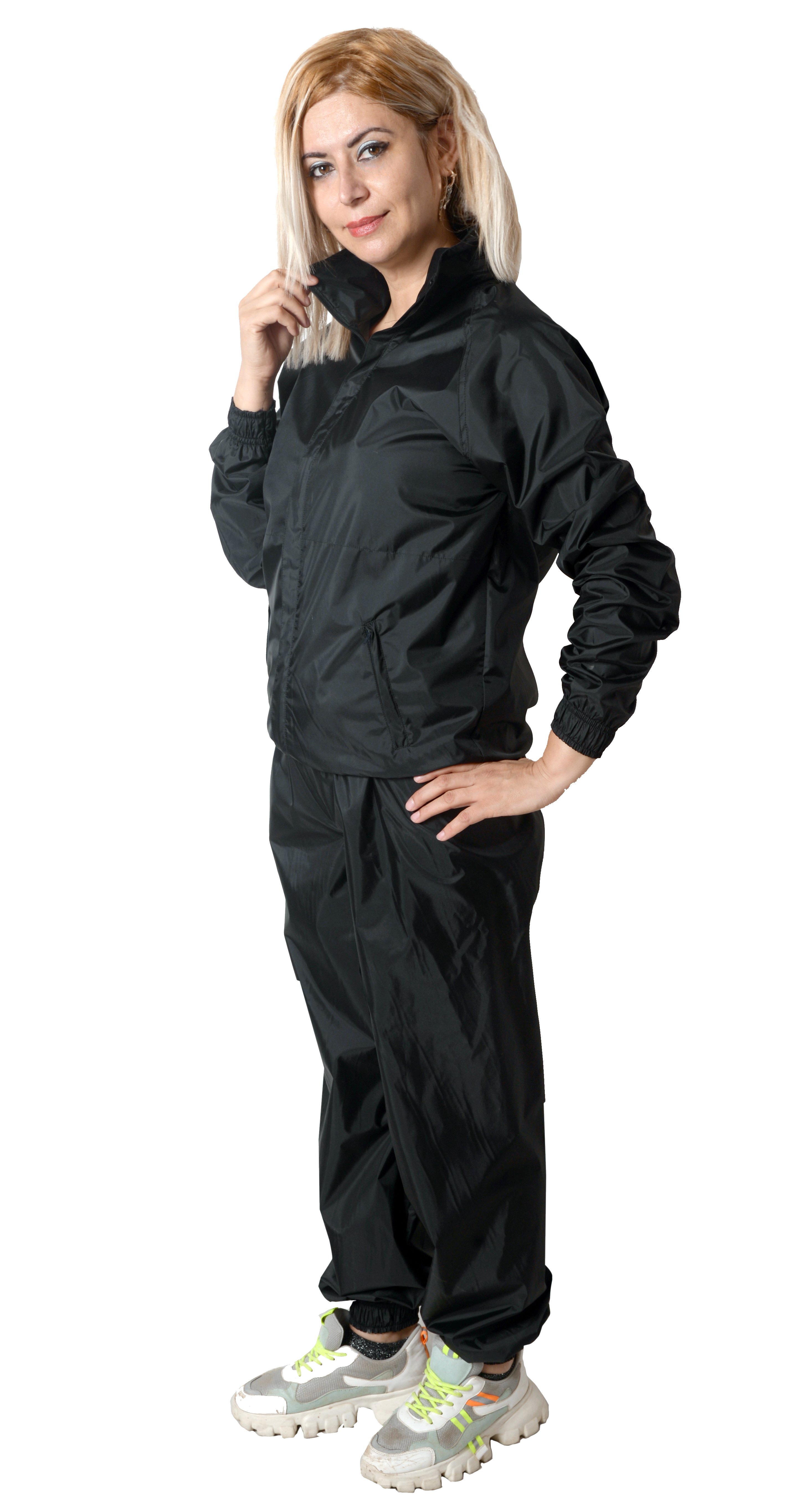 Standart eşofmanlara göre çok daha farklı terleme sağlayan özel kumaşı ile sauna eşofmanı kullanırken daha fazla terlemek mümkün. İster ev işlerinizde, ister spor yaparken sauna eşofmanı kullanabilirsiniz. Çok fazla terleme olacağından sporunuz bittiğinde hemen üstünüzü değişmenizi öneriyoruz.