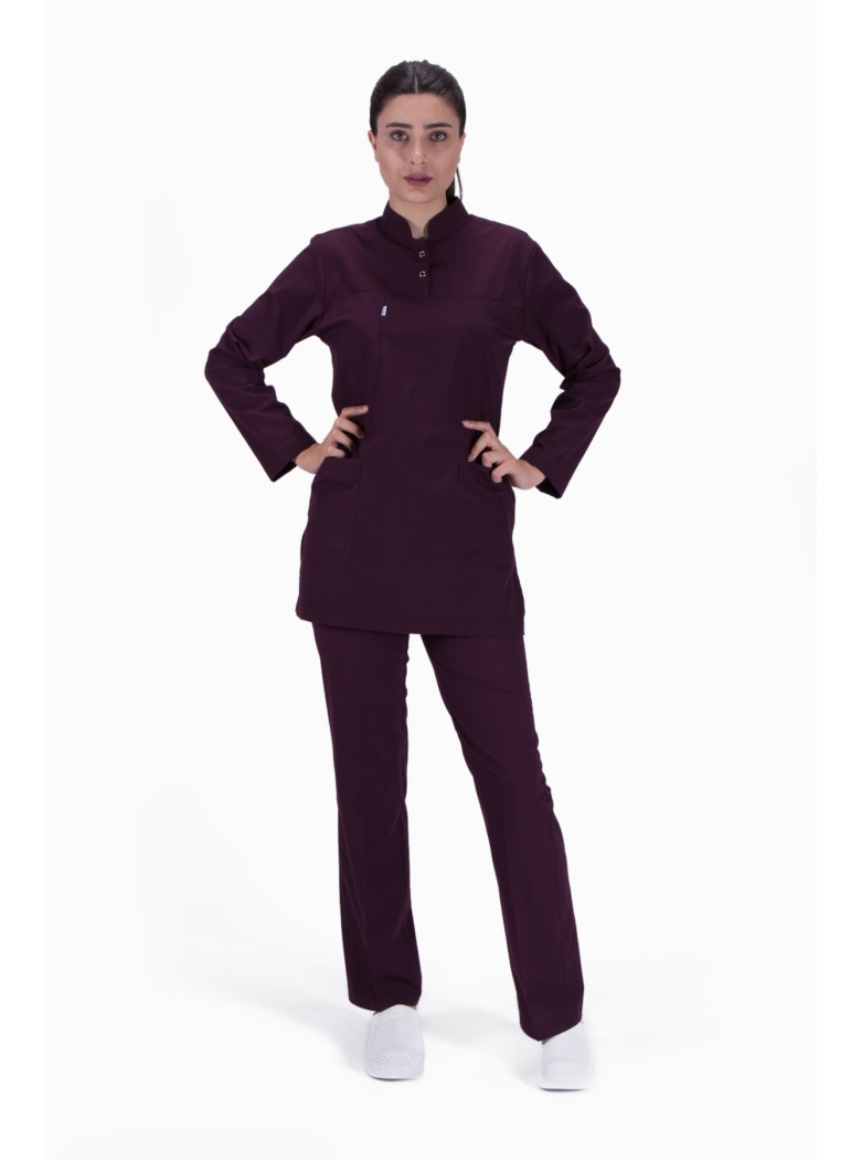ÜST FORMA SIFIR YAKA, İKİ ÇITÇITLI, ARKADAN PENSLİ, UZUN KOLLU TUNİKTİR. 3 ADET CEBİ BULUNMAKTADIR.